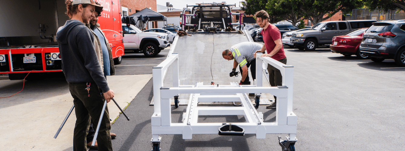 Second Order Effects (SOE) helped Stellar Pizza to design a system that efficiently loads and unloads robots of varying weights from the back of the truck. The system also has to maneuver them within their facility to support testing, maintenance, and service activities. SOE opted for a four-wheel dolly design that can transport their robotic modules laterally as well as lift them to the required truck height. To safely transfer the truck-sized robot from the truck to the dolly, the rails that the robots ride along need to be aligned within to 0.5 mm of each other over the length of the robot. SOE procured the parts, assembled, and tested the dolly and lift system, working closely with Stellar Pizza before their launch in Los Angeles in 2022.