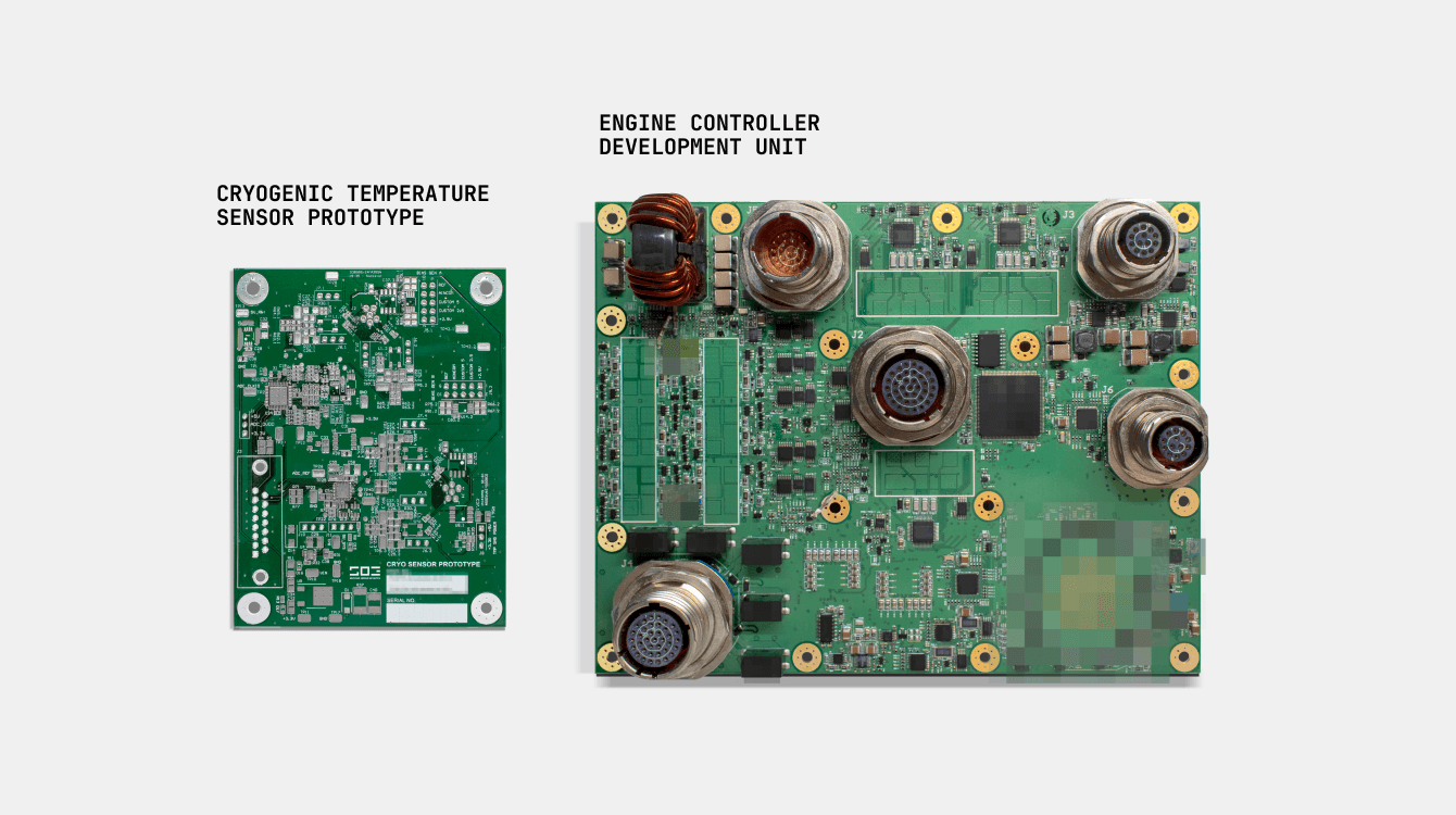 Cryogenic temperature sensor prototype and Hadley Block 2 engine controller development unit. Certain areas have been blurred to maintain confidentiality.